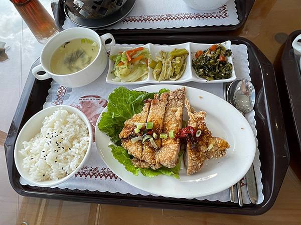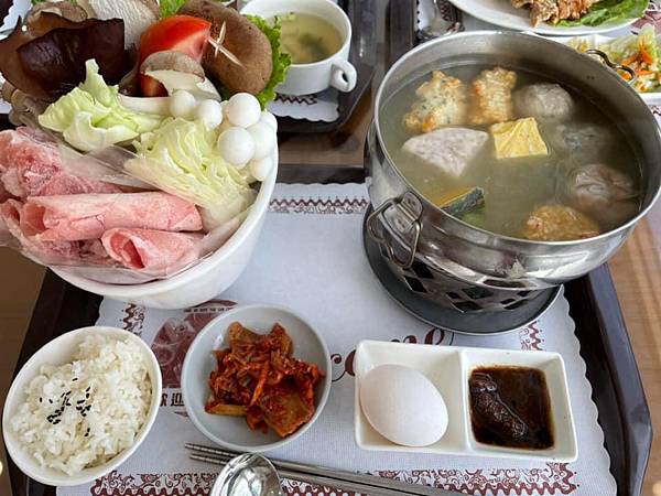 豬肉火鍋 店裡的火鍋是用簡易的酒精燈火鍋,菜盤還挺豐富的還有肉片也很新鮮!還有附上韓式泡菜