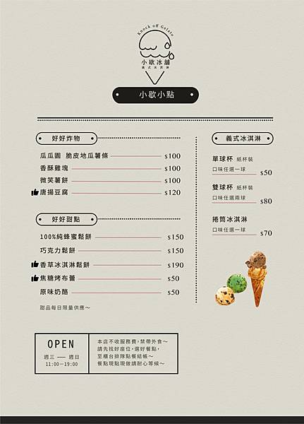去小歇冰舖如果是憑「走踏台南旅食趣~」到小歇打卡、分享。順便幫兩個粉專按讚,就享有義式冰淇淋買一球送一球的活動喔!!